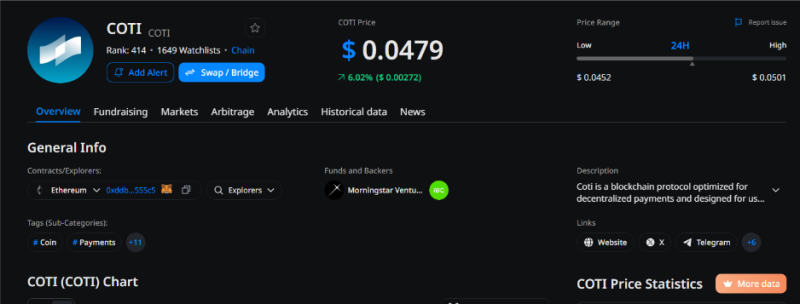 - Thông tin gọi vốn: Đã gọi vốn được 22.46M$. https://cryptorank.io/ico/coti