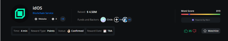 - Đã gọi vốn được 4.5 triệu đô: https://crypto-fundraising.info/projects/idos/