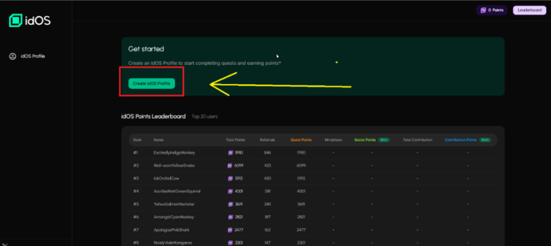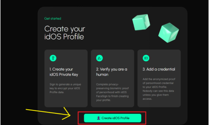 Click vào Create idOS Profile , làm theo hướng dẫn của dự án,