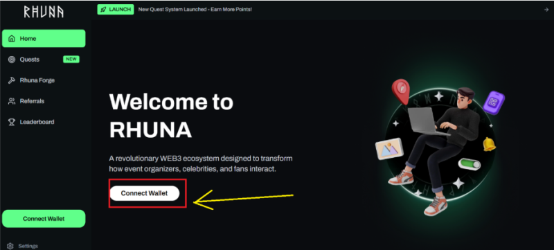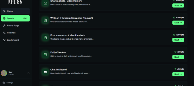 - Rhuna đã ra mắt cổng nhiệm vụ! Chúng ta có thể hoàn thành các nhiệm vụ xã hội đơn giản và kiếm điểm. Có thể trong tương lai sẽ có airdrop cho những điểm này.