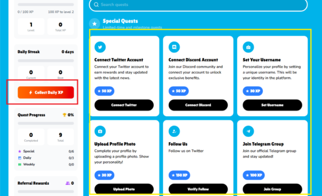 Tiến hành checkin hàng ngày và hoàn thành các nhiệm vụ xã hội để kiếm XP