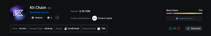 - Đã gọi vốn được 20 triệu đô: https://cryptorank.io/ico/kii-chain#funding-rounds